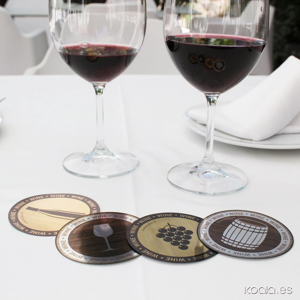 4 st smarta runda skivor som monteras på vinflaskor för att undvika att det droppar vid servering. Dessa antidropskivor är formade som runda skivor och monteras genom att rullas ihop för att fästas på vinflaskans öppning. Alla med sitt unika stämningshöjande vinmotiv.