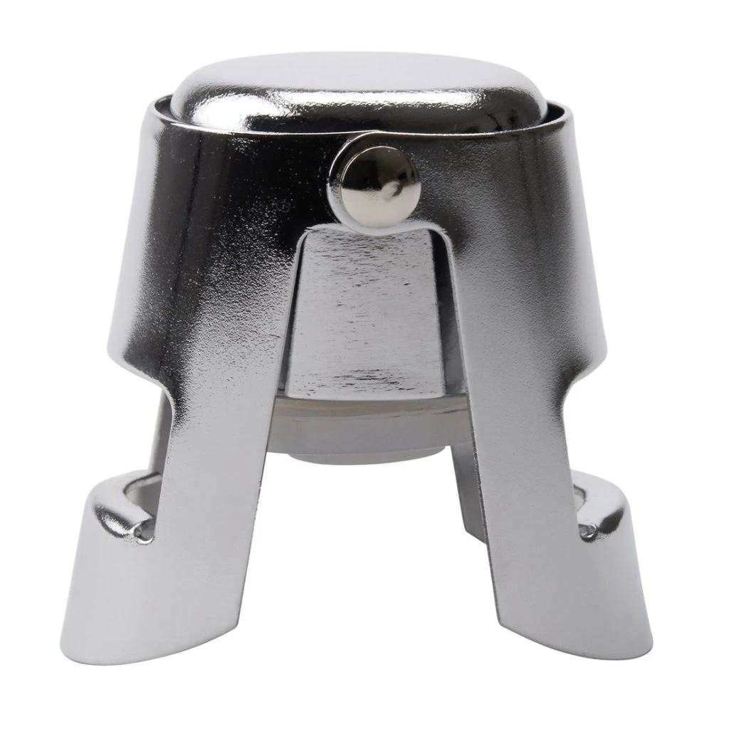 Denna stilrena vinstopper för mousserande och stilla viner har en enkel och genial konstruktion. Bordeaux vin- och champagnestopper är försedd med en propp undertill och två st fästen i metall. Stoppern appliceras enkelt runt flaskans mynning med de två metalldelarna. Det smarta är att ju högre tryck det är uppåt, desto högre motstånd ges från de två fästena.