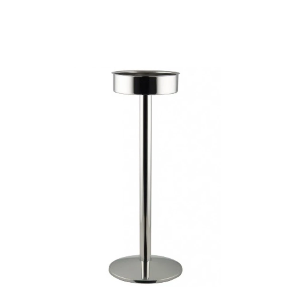 Ett stilrent ställ i metall för en elegant placering av vin- eller champagnekylare. Denna modell är anpassad för Dorres läckra vin- och champagnekylare, men lämpar sig bra till andra madonnor och vinkylare av mindre storlek.Perfekt för att skapa mer yta på serveringsbordet eller för att strategiskt placera ut champagneflaskorna vid minglet!