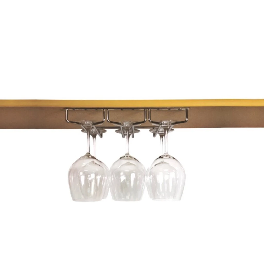 Glashängare för glas med 3 rader som ger gott om plats för att hänga upp dina glas med fot. Glasrack gör att man kan frigöra mer yta för att förvara glas samt gör det enkelt att hantera glasen då de blir lättåtkomliga. Fäst glashängaren i baren eller under skåpet i köket så kommer du att uppskatta hur enkelt du kommer åt glasen vid behov.