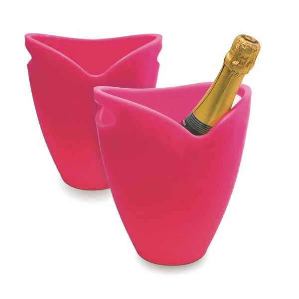 En stilig ishink i färgen Strawberry från Pulltex. Denna vinkylare håller ditt vin eller champagne kallt och är tillverkad av det lätta materialet akrylplast. En greppvänlig kylare som försetts med två handtag vilket underlättar hanteringen och fördjupningen på ena sidan stabiliserar vinflaskan och gör tömning av isvatten enkelt. Tål maskindisk.