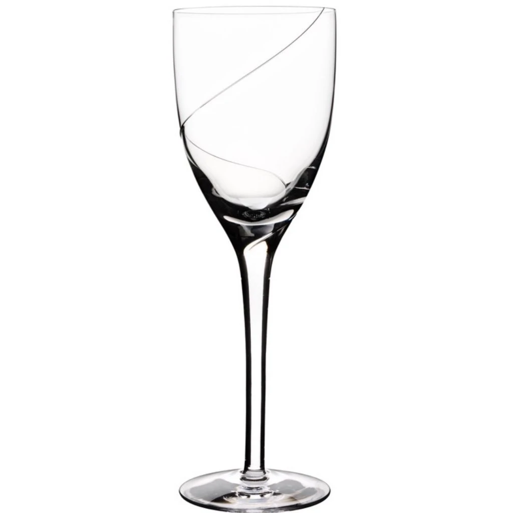 Detta vitvinsglas från svenska Kosta Boda har en tunn glastråd som virar sig runt glaskroppen. Line Vitvinsglas 28 cl har en vacker fot och stjälk som sömlöst sitter ihop med den expanderande kupan. Kupans utformning presenterar en ren och tydlig aromatisk bild ur vita viner.
