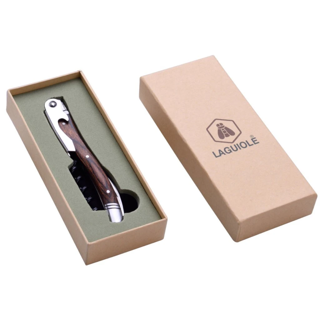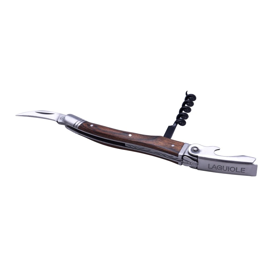 Servitörskorkskruv Laguiole är en elegant vinöppnare som alltid gör jobbet med att öppna vinflaskan. Denna korkskruv har även en folieskärare med tandat blad infälld.