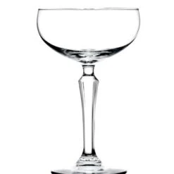 Ett läckert och nätt champagneglas från amerikanska Libbey. Speakeasy Coupe champagneglas är ett klassiskt utformat balkongglas för champagne och cocktails designat i Art Deco stil. Denna Coupe har en liten, elegant kupa och en relativt hög fot med sexkantiga slipning.