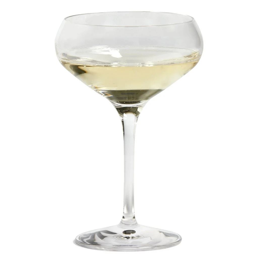 Graciöst champagneglas av typen Coupe från Orrefors. More Coupe champagneglas har en elegant stjälk och fot. Den vida och grunda kupan har en lätt kupning upptill som delvis bevarar en liten dos av aromen och även bidrar till en angenäm presentation av drycken i munhålan. Ett idealiskt champagneglas till champagne, cava och prosecco med mera. More Coupe är även ett riktigt snyggt glas att servera cocktails ur.