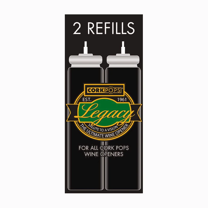 Refiller med 2 st patroner med tryckluft som används til vinöppnare Corkpops för att öppna din vinflaska på ett mycket snabbt, enkelt och elegant vis.