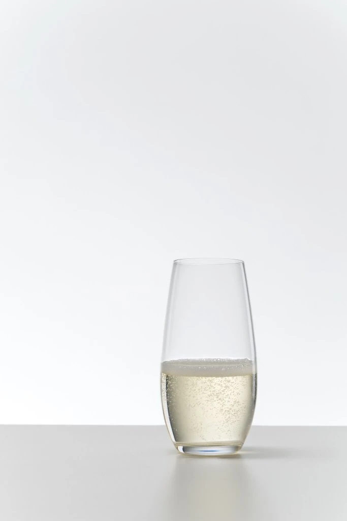 Mycket angenämt champagneglas utan fot. I The O Champagne har Riedel lyckats bibehålla en lyxig upplevelse men samtidigt givit glaset en avslappnad känsla. Detta vinglas har designats för att utmana balansen mellan uppfriskande kolsyra och de karraktäristiska aromerna hos Champagne och mousserande viner. Den smala kroppen bibehåller kolsyran och förhindrar för mycket oxidation. I botten på glaset har Riedel placerat en liten ojämnhet som bidrar till att upprätthålla kolsyran i en strid ström. Glasets delikata kupning bibehåller de ömtåliga aromerna och lyfter dess innehåll.
